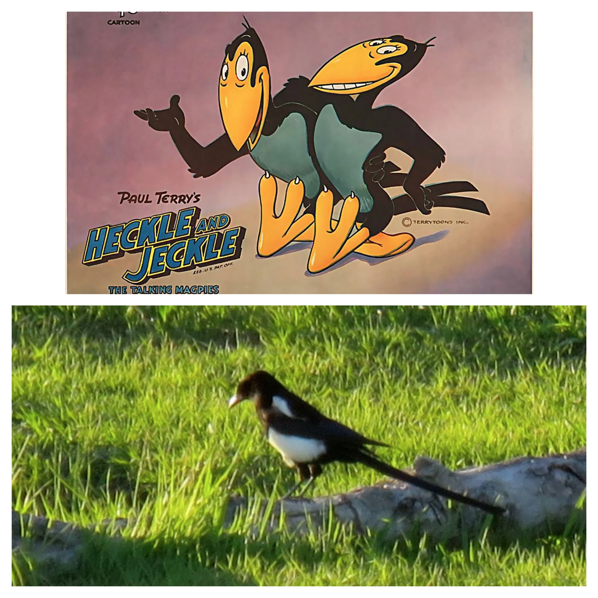 Another common bird out West at least is the Magpie. They're very easy to recognize as they look somewhat like giant flying Oreo cookies. My major handicap in spotting them is that I kept expecting them to look like Heckle & Jeckle. Hint: Magpies in real life look nothing like Heckle & Jeckle. This is one fact that Mr. Kaufman should incorporate into his next edition. It is possible that magpies alternately speak with Brooklyn and English accents, but I can't confirm this first hand.